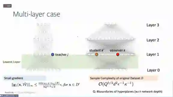 我们现在来看多层的学生神经网络和教师神经网络,其中m和n是相对宽度,都是有限的,学生神经网络比教师神经网络稍微宽一点。