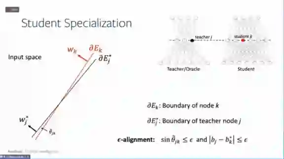 这种设置对于理解泛化能力有更多的优势。因为如果我们能证明,学生网络跟教师网络的节点存在对应关系,就可以证明泛化能力。因为学生网络不仅仅只是在输出结果上相同,而且在内部结构上也相同,也即是学生网络学到了教师的“精髓”。对于新的输入,我们可以预言学生网络和教师网络的输出是一样的。所以这种设置其实在某种程度上可以简化一些理论分析。