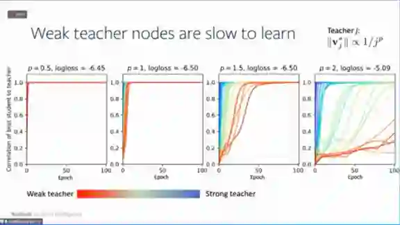 更弱的教师网络节点学习更慢。