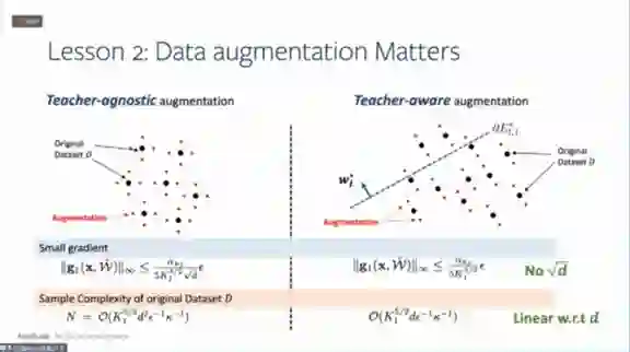 如果数据增强的方向,跟教师网络节点的样本复杂度上界的方向一致的话,样本复杂度上界就会变得更紧。