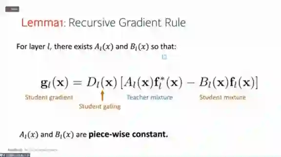 首先,我们能得到一个引理,即学生网络的梯度其实可以写成教师网络激活函数和学生网络激活函数的线性组合。