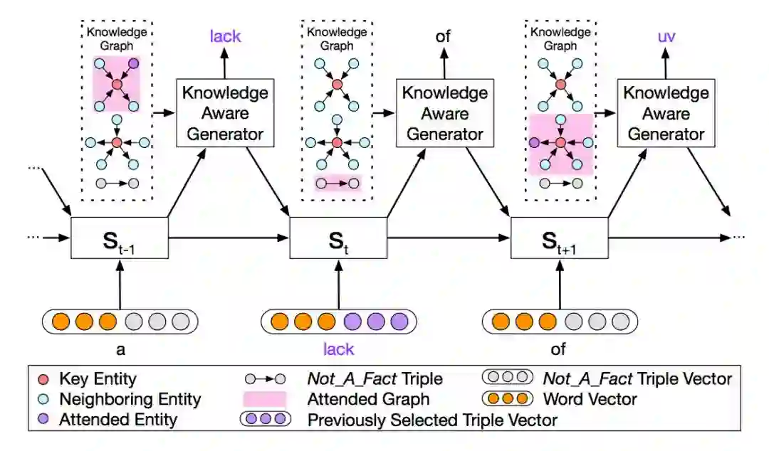 为了解决这个问题,有一些利用常识知识图谱生成对话的模型被陆续提出。当使用常识性知识图谱时,由于具备背景知识,模型更加可能理解用户的输入,这样就能生成更加合适的回复。但是,这些结合了文本、对话记录、常识知识图谱的方法,往往只使用了单一三元组,而忽略了一个子图的整体语义,会导致得到的信息不够丰富。