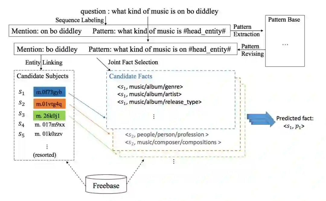 考虑到这些问题,本文首先使用模式抽取和实体链接,将可能的实体描述和问题模式提取出来,而后减少知识库中的候选实体数量。