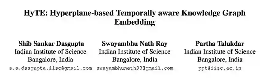 这些模型都没有考虑时间维度,一直将知识图谱当做静态来处理,这显然不符合事实。数据的暴涨与更新表明知识图谱本来就是动态的,所以后来有工作将时间信息考虑进去,但只是将时间序列作为 KG embedding 过程中的约束,没有明显地体现时间的特性。为此,本文提出的 HyTE 模型直接在学习的过程中结合时间信息。