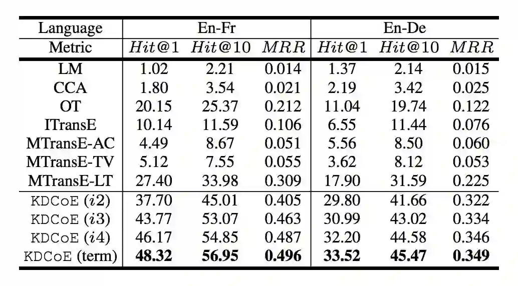 2. 证明 KDCoE 在 Zero-shot 实体对齐以及跨语言知识图谱补全(Cross-lingual KG Completion)任务上的有效性;