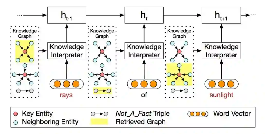 如图所示,当编译到“rays”时,会把这个词在知识图谱中相关的子图得到(图 2 最上的黄色高亮部分),并生成子图的向量。每一个子图都包含了 key entity(即这里的 rays),以及这个“rays”的邻居实体和相连关系。