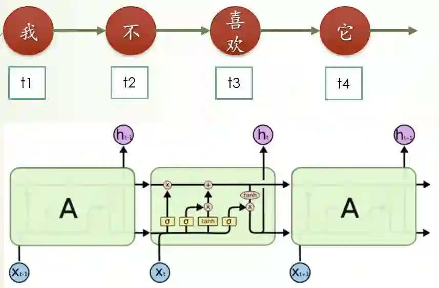 例如,在含有前置否定词的句子“我喜欢”和“我不是很喜欢”中,虽然“喜欢”这个词表达了正面的情感含义,但是句子前面出现的否定词却更重要,否定词会使语句表达的情感截然相反。LSTM 可以通过上下文学习到这种组合规律,从而提高分类准确率。