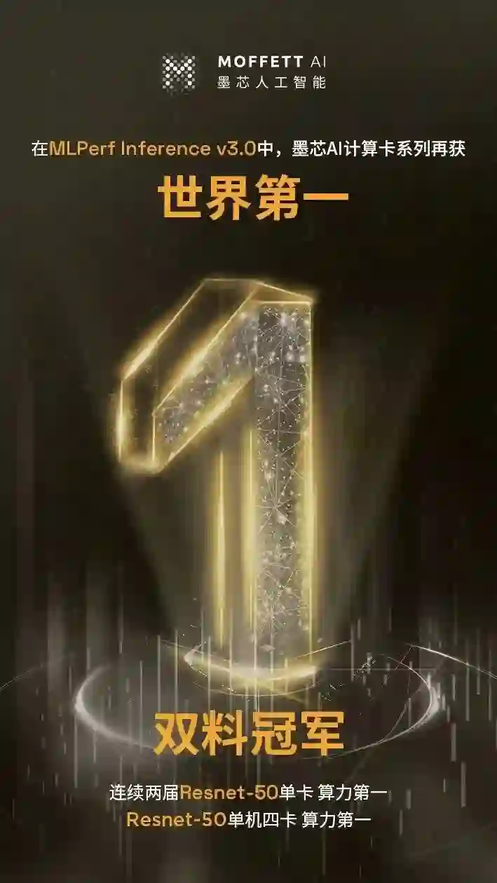 来自中国的 AI 芯片企业 —— 墨芯人工智能,凭借软硬协同的稀疏计算技术,在 MLPerf 竞争最激烈的 ResNet50 模型上蝉联冠军,斩获开放任务分区 “双料冠军”:S40 计算卡以 127,375 FPS,获得单卡算力全球第一;S30 计算卡以 383,520 FPS 算力,获整机 4 卡算力全球第一。