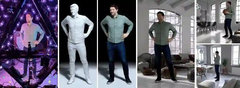 影视作品里许多特效场景都需要借助绿幕完成,在技术不过硬的时候,常会发生「五毛特效」的惨案。来自谷歌的研究者发明了一种 Bling Bling 的「LED 蛋」3D 人体捕获装置:先把表演者请进「蛋」里一阵猛拍,然后进行重建和渲染,就能任意切换人物所处的环境,连光照、阴影都可以根据环境进行调整,简直完美。
