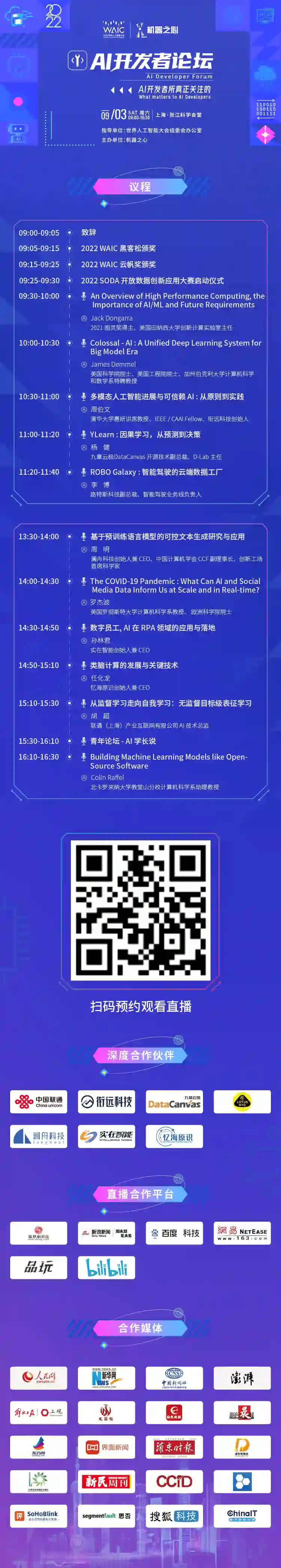 2022 世界人工智能大会渐入高潮。9 月 3 日 9:00,「WAIC 2022 · AI 开发者日」将在张江科学会堂重磅登场。