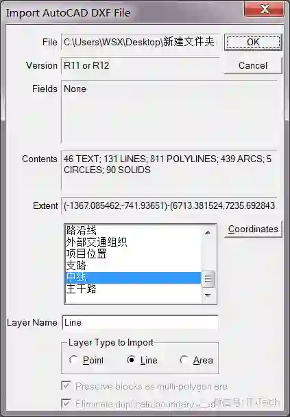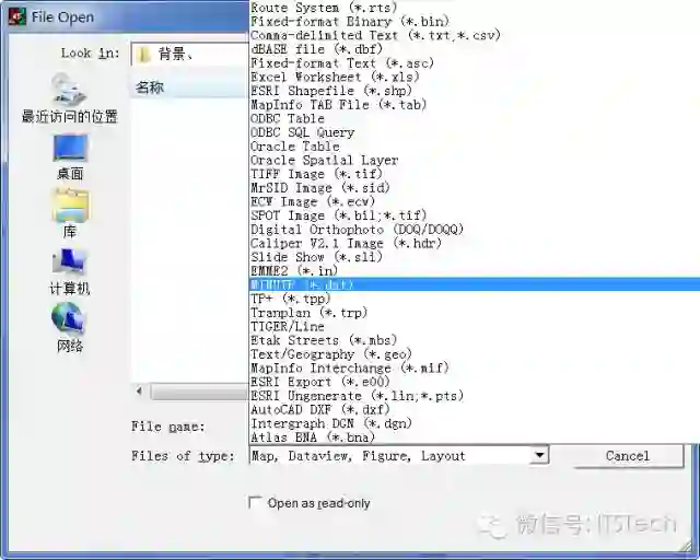 此外TransCAD还可以导入多种文件类型,如图形(.tif)文件、AutoCAD(.dxf)文件、ESRI Shape(.shp)文件、MINUTP(*.dat)路网文件等。