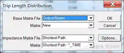选择菜单Planning/Planning Utilities/Trip Length Distribution;