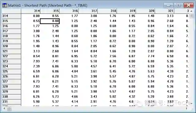 新和成的矩阵中新增Matrix 1一表,其余各表中也已包含新增小区,至此新小区已加入OD矩阵表中。