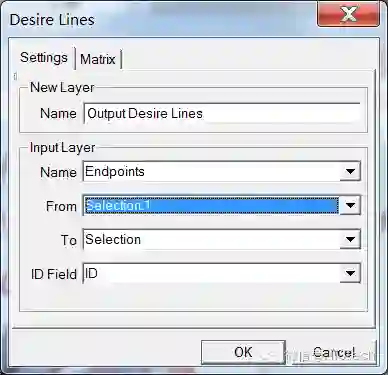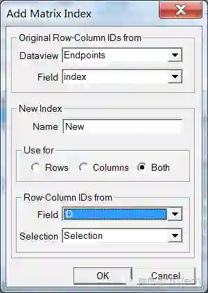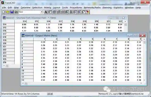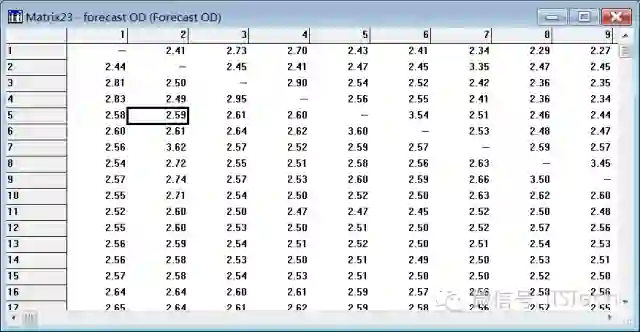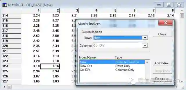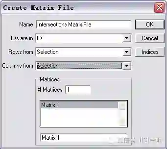 (3)创建新OD表,File-New-Matrix,行列均选择Selection集数据,保存为一个新矩阵。