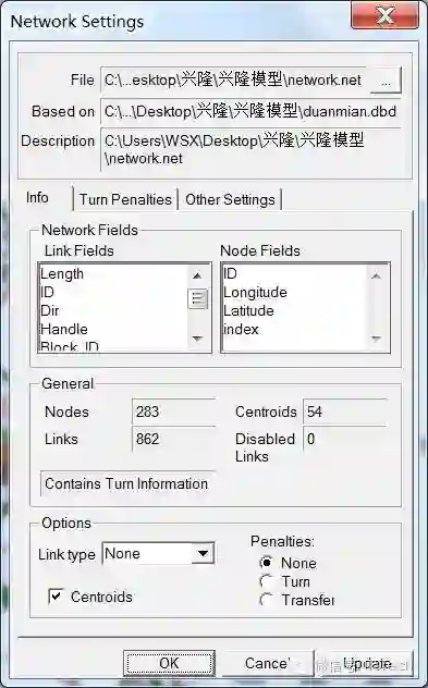 选择 Network/Paths > Turn Penalty Toolbox,弹出Penalty Dataview 对话框。