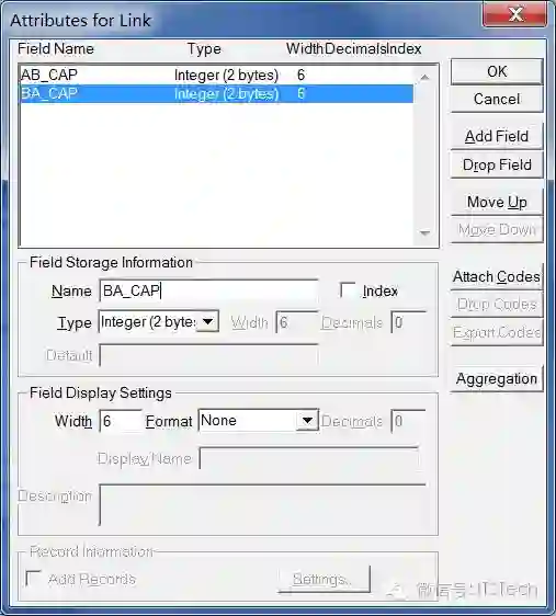 点击Add Field按钮,在Name框内输入AB_CAP,在Type框选择Integer(2bytes);再次点击Add Field按钮,输入下表其它项目。