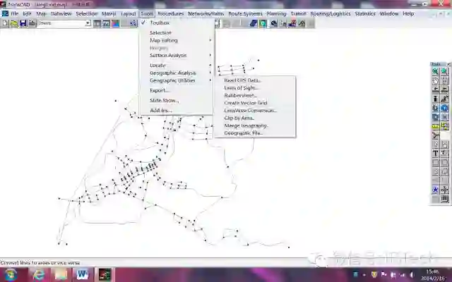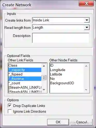创建交通模可以用手工方式或导入其它电子数据两种方式。手工方式就是使用使用位图做为底图,使用TransCAD的编辑功能建立模型;导入数据创建模型,就是利用TransCAD的转换工具,直接导入可识别的电子地图,然后再利用TransCAD的编辑功能添加需要的属性。