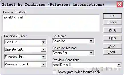 (2)关闭对话框,选择点层,Selection-Select by Condition,选择全部内部小区(zoneID不为空),即包括新增OD节点在内。