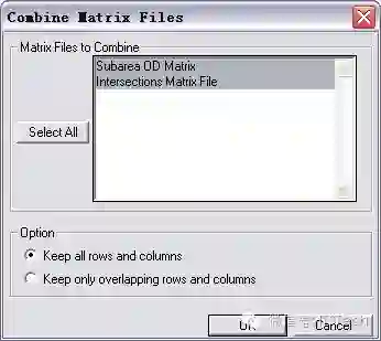 (4)打开上一步中保存的矩阵和模型中所给矩阵MMA_sub_OD,将两个矩阵合并:点击Matrix-Combine…