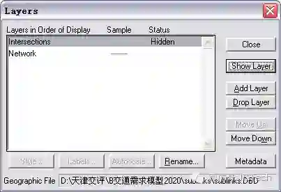 (1)打开路网,空白处右键-Layers,选择节点层(Intersections),点击Show Layer,将节点层显示。