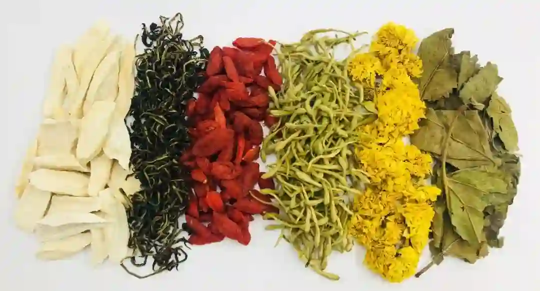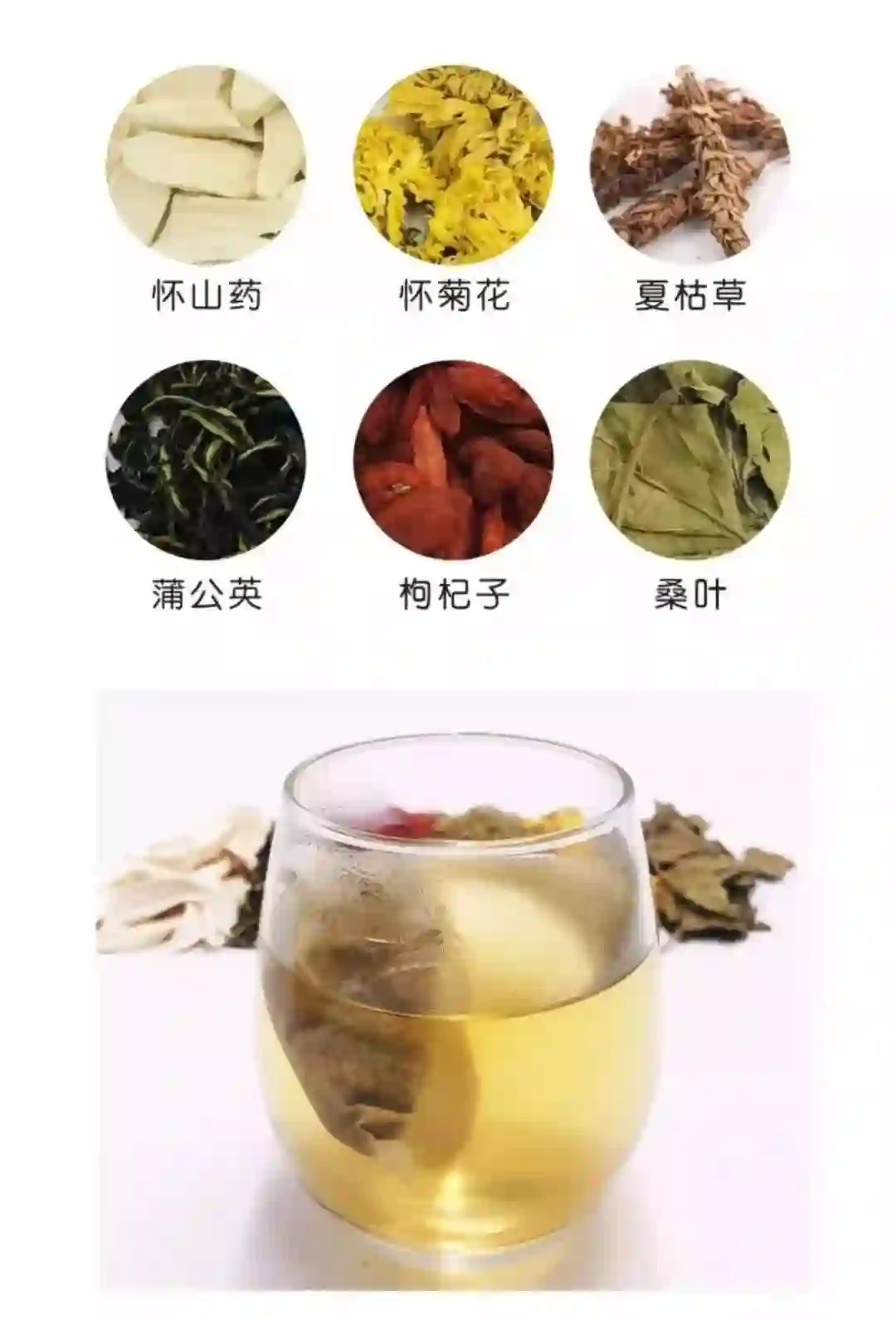 清目明元茶集合6味纯天然中药食材,其中怀菊花和怀山药是河南焦作(怀庆府,有3000年历史)大名鼎鼎的四大怀药!四大怀药被誉为"国药"、"华药"受到国家地理标志产品保护。传承千年,以营养丰富、药用价值高而出名!另外,桑叶、夏枯草、蒲公英等草药入肝经,清热解毒,保护肝脏功效甚佳!