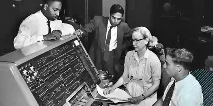 计算机科学家Grace Hopper 正在指导一个开发早期 COBOL 应用程序的团队