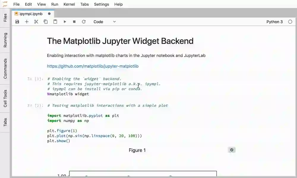 利用 Jupyter 交互式小部件框架,jupyter-matplotlib 可以在 Jupyter notebook 和 Jupyterlab 中实现 matplotlib 的交互功能。