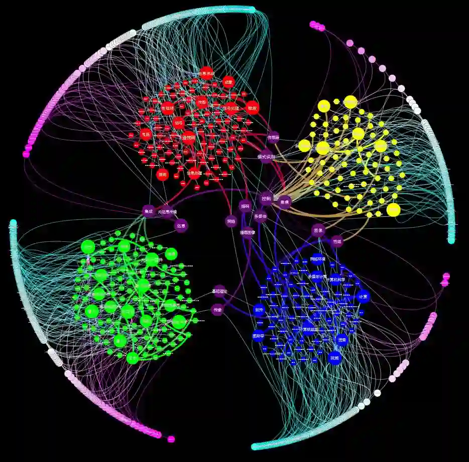 而通过对于关键词之间的跨越界限和交叉融合来分析,我们可以看到诸如多媒体、网络、编码、控制等内容逐渐被扩展开来,一、二、三这几个处都有所涉及,事实上考虑到近几年来深度学习,图像识别等领域的火热,这也是近些年在这些领域上的学科交叉与融合的体现。