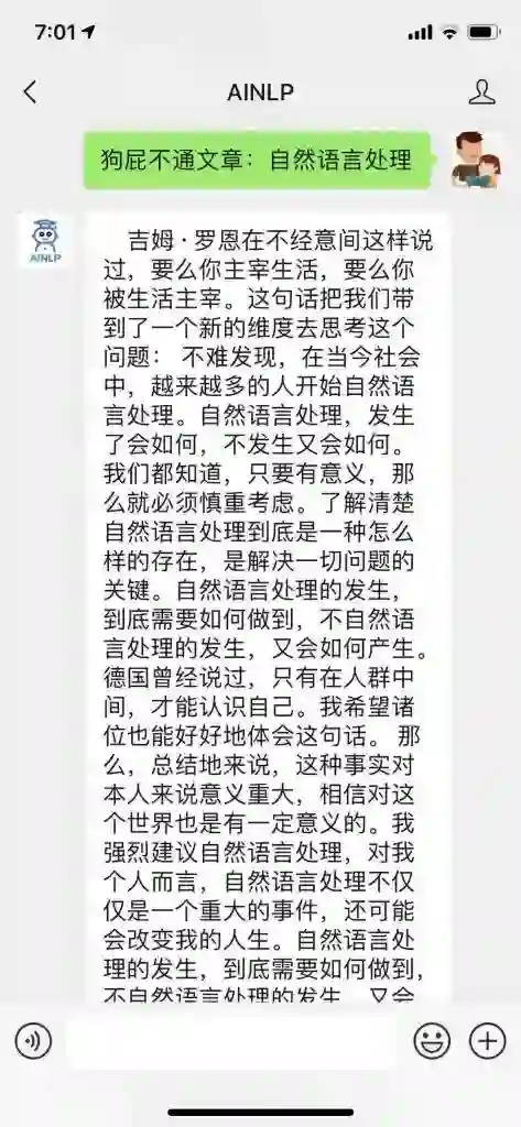 AINLP公众号新增"狗屁不通文章生成器"接口