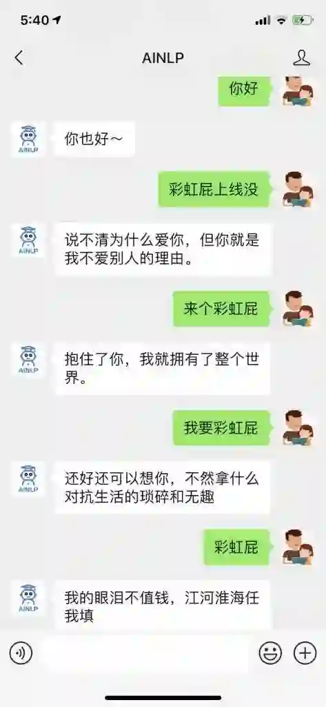 今天推荐一个有趣的自然语言处理公众号AINLP,关注后玩得根本停不下来!AINLP的维护者是我爱自然语言处理(52nlp)博主,他之前在腾讯从事NLP相关的研发工作,目前在一家创业公司带技术团队。AINLP公众号的定位是一个有趣有AI的自然语言处理社区,分享有质有量的NLP技术文章,欢迎关注: