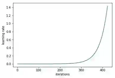 在“训练神经网络的循环学习率(Cyclical Learning Rates (CLR)for Training Neural Networks)”[4] 的第 3.3 节中。Leslie N. Smith 认为,通过在每次迭代中以非常低的学习率来增加(线性或指数)的方式训练模型,可以估计好的学习率。