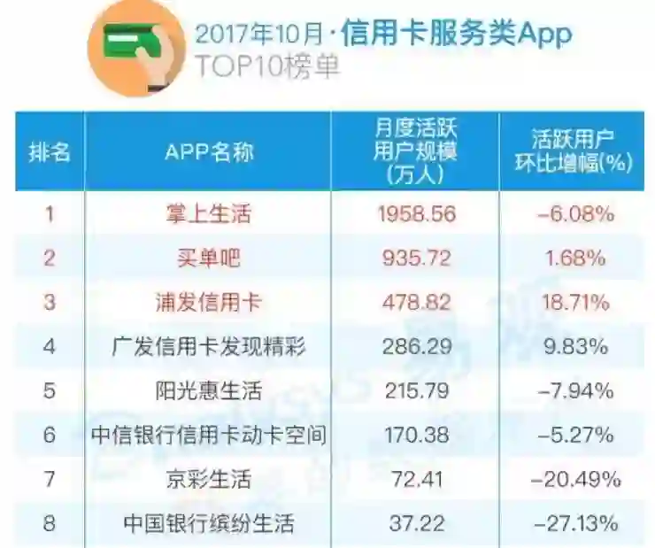 据易观去年底发布的报告显示,“在信用卡服务方面,虽然掌上生活月度活跃规模更大,但交通银行的买单吧均都领先于掌上生活。买单吧人均月启动次数达到6.18和0.28小时”,并指出原因是——买单吧除了常规的信用卡支付、理财业务,扫码支付方式被核心主推,还联合线下商城、电影、美食的积分打折优惠,甚至联合饿了么借势外卖市场的巨大流量。涉足了更多的用户生活消费领域营销,使得用户粘度也得到进一步提高。