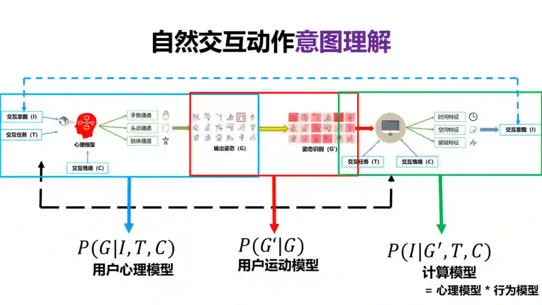 不管输编码还是解码,总体上是自然交互动作意图理解,它牵涉到用户心理模型的建立,根据交互意图和交互任务,通过什么样的数据通道可以表达合适的符合人心理模型的动作表达。