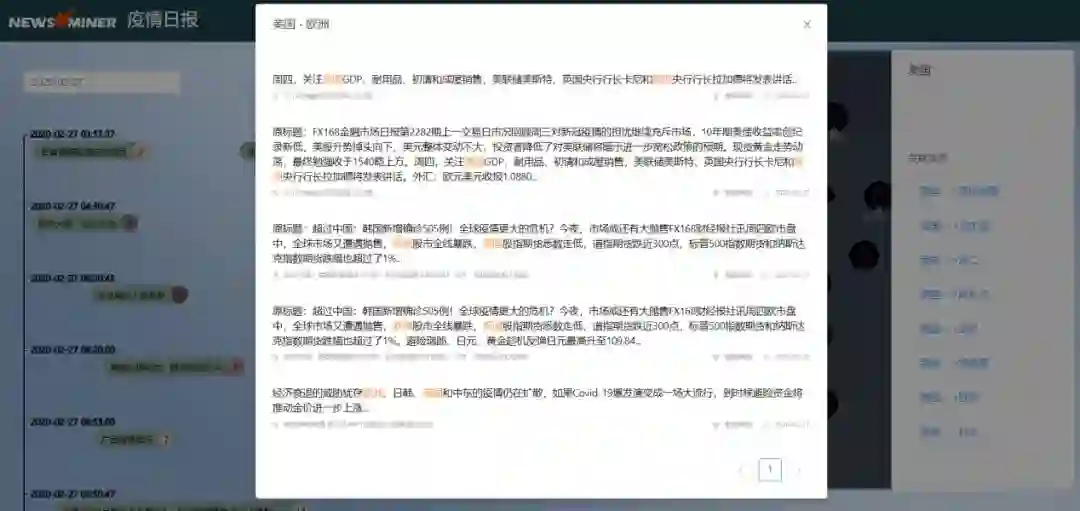 抽取美国与欧洲为关键词的新闻,由此得出疫情与股市的关系较为紧密。