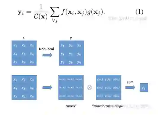 文章定义的对于神经网络通用的Non-Local计算如下所示:
