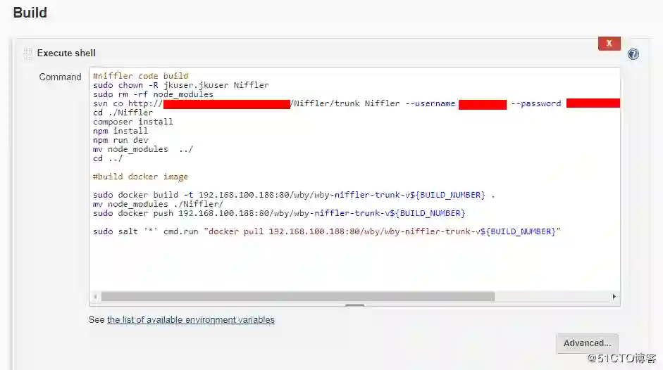 整套流程,没有实现如何回滚到上一版本的方法,其实这个也容易,就是在③步的svn代码checkout那步加上带版本号的命令行即可。