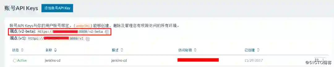 需要在Rancher的管理界面上创建API>秘钥>添加账号APIKey增加到jenkins中,使用API为https://xx.xx.xx.xx:8080/v2-beta