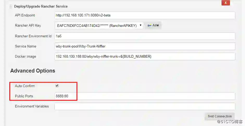 Rancher 插件的配置部分,其中API Endpoint、Rancher API Key和Rancher Enviroment Id