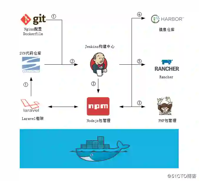 Jenkins借助Rancher的插件通过API与rancher交互更新service达到更升级容器的目的(也就是更新代码版本),其中pull镜像的这一步会通过saltstack并行从harbor上下拉之前构建好的镜像到多个主机上