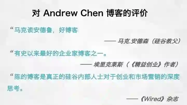 最近关注了一批硅谷的增长大牛,Andrew Chen 是其中之一。看了他的 blog 收获多多,总结了8点知识模块干货,分享给大家。