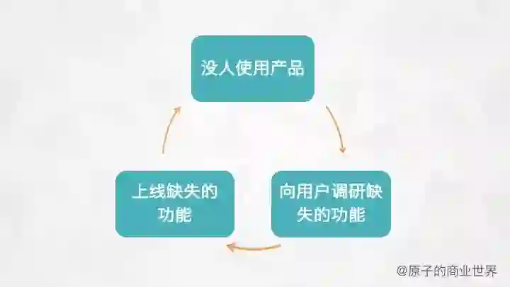 当你问用户“你觉得什么功能缺失?”时,就完全是用户导向而非有一个产品前瞻了,而这是个重大的错误。