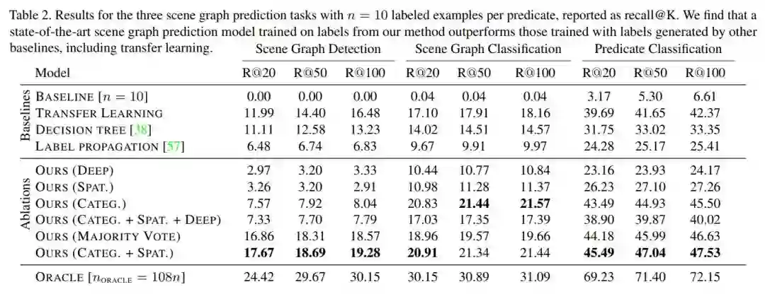 到目前为止,所有场景图模型都仅限于在一小部分视觉关系上进行训练,这些关系中每个都只有数千个训练标签。在本文中,作者从一个小的有限集合中自动生成缺失的关系标签,并使用这些自动生成的标签来训练下游场景图模型。