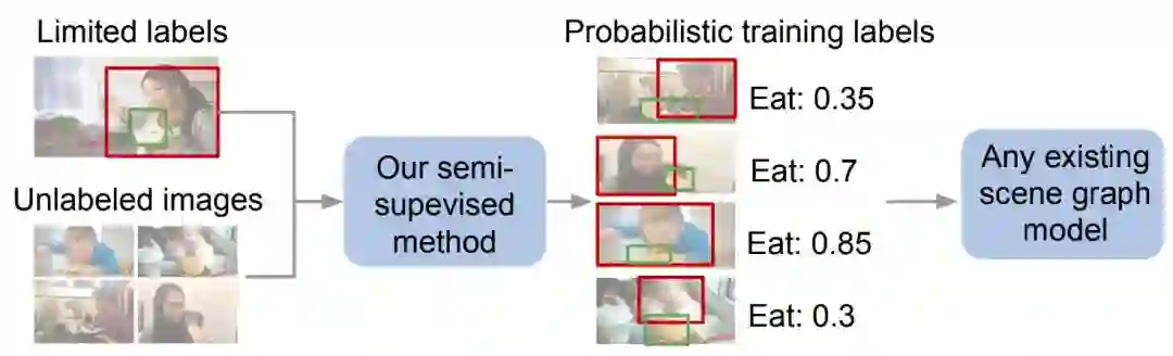 我们的半监督方法自动生成概率关系标签来训练任何场景图模型。