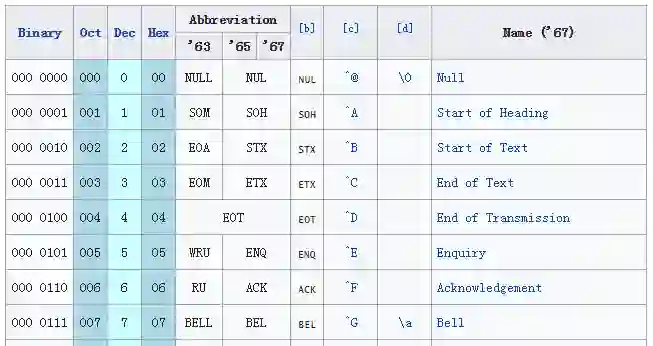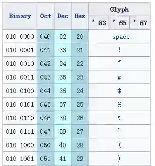 | Value | Char | Value | Char | Value | Char | Value | Char | |||