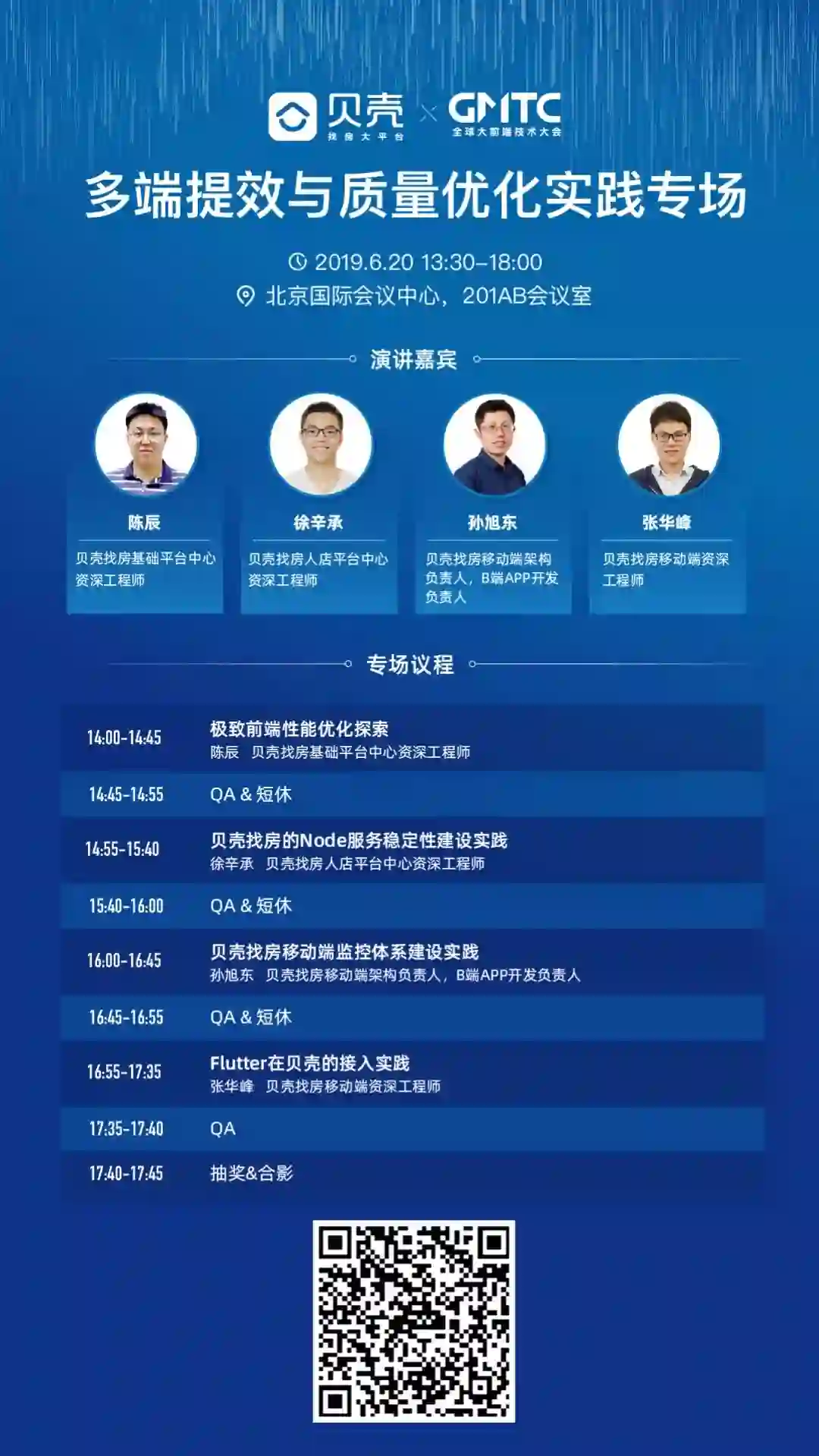 除此之外,本专场还将重点介绍贝壳找房在 To B、To C 业务的前端开发中,对 Node 服务稳定性建设的实践经验;讲述在 Native、Flutter、JS 等多场景下的质量监控预警以及快速定位问题方法;同时分享贝壳找房在 Flutter 跨平台技术的架构设计、自动化集成、多业务解耦协作提效等方面的积累探索。