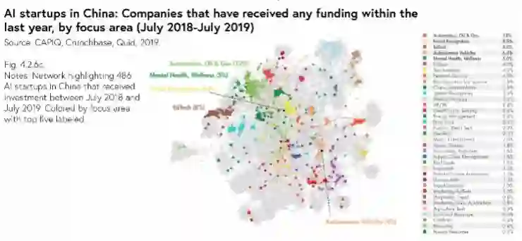 从领域分布来看,中国初创企业的重点领域包括自动化/石油和天然气(12%)、人脸识别(8.8%)、教育科技(8%)、自动驾驶(6.4%)和心理健康/健康(5%)。而美国和欧洲初创企业的分布重点则主要是时尚和零售技术、医疗、文本分析等。