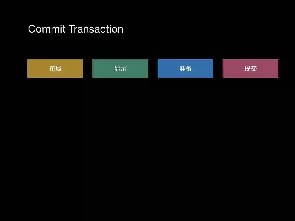 如上图所示,Core Animation在App将图层数据提交到应用外进程Render Server,这是Core Animation的服务端,把数据解码成GPU可执行的指令交给GPU执行。可以看出一个问题渲染服务并不是在App进程内进行的,也就是说渲染部分我们无法进行优化,我们可以优化的点只能在第一个提交事务的阶段。那么这个阶段Core Animation到底做了什么呢?下面我们一起来看看!