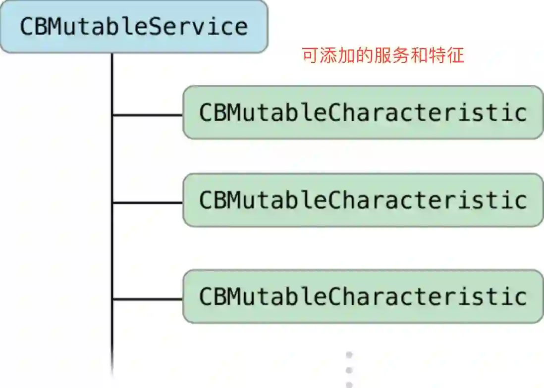 CBMutableService:外设开发的时候可以添加多个服务,所有这里用CBMutableService来创建添加服务。