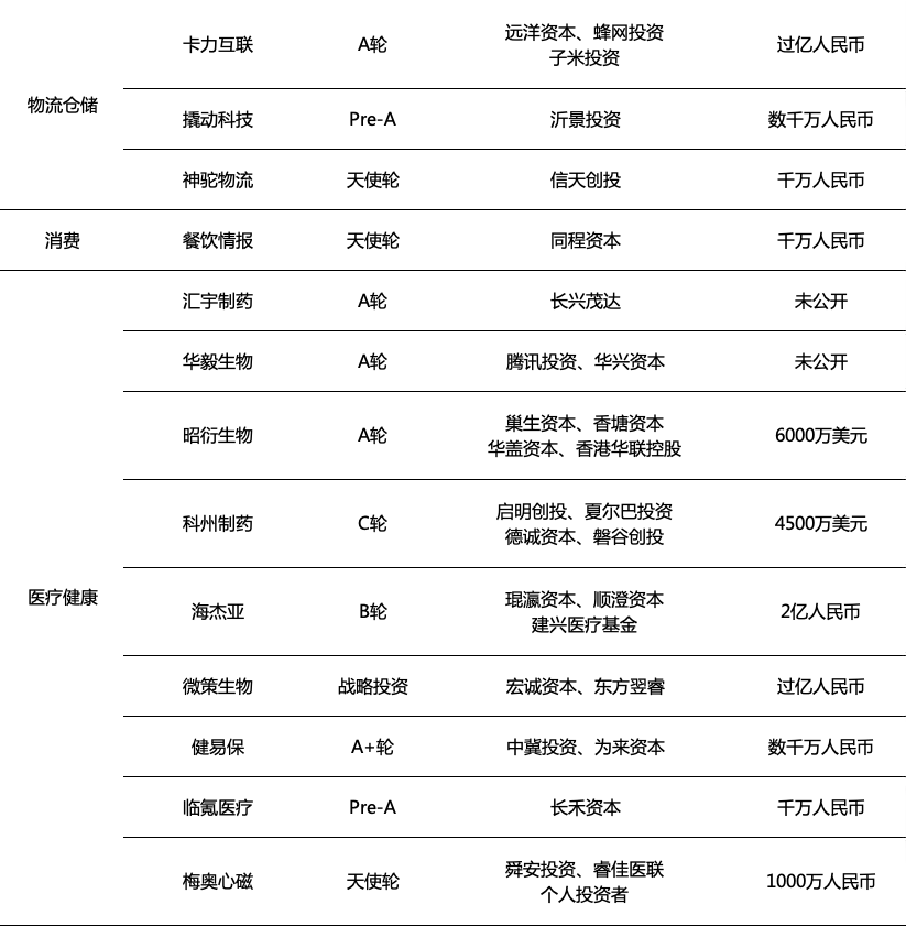 本周单笔过亿人民币融资事件有8起,医疗健康3起,硬件2起,金融、智能制造、社区社交各1起。