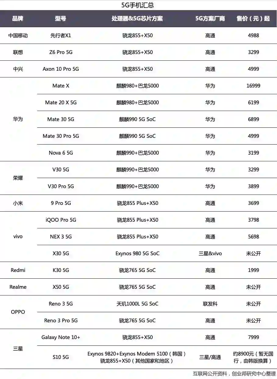 从6月5G牌照正式发放,到10月5G正式商用以来,各大厂商争相发布了自家的5G手机。截止目前,11余家品牌发布了近20款5G手机,价格由1,999元-16,999元不等。